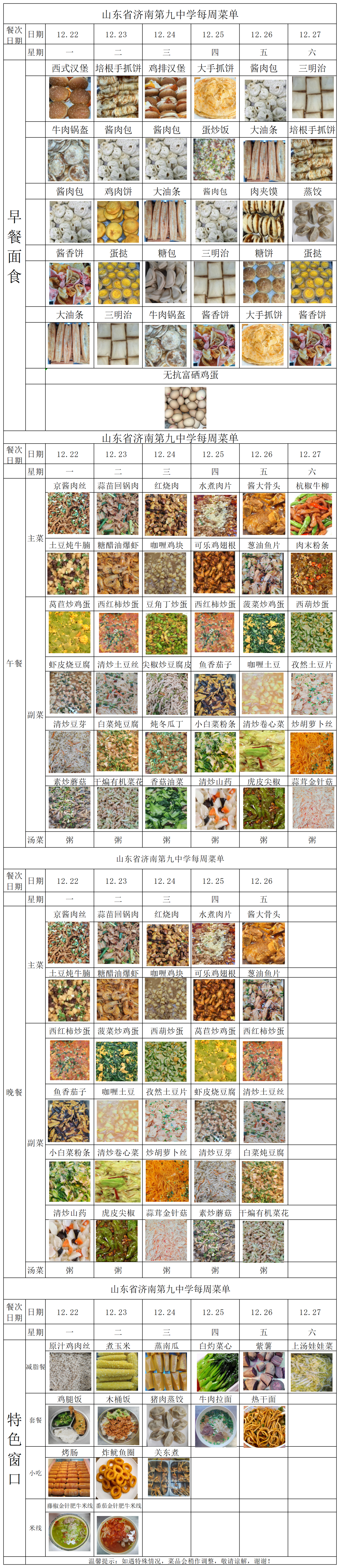 济南九中2025-2026学年第一学期第17周菜单