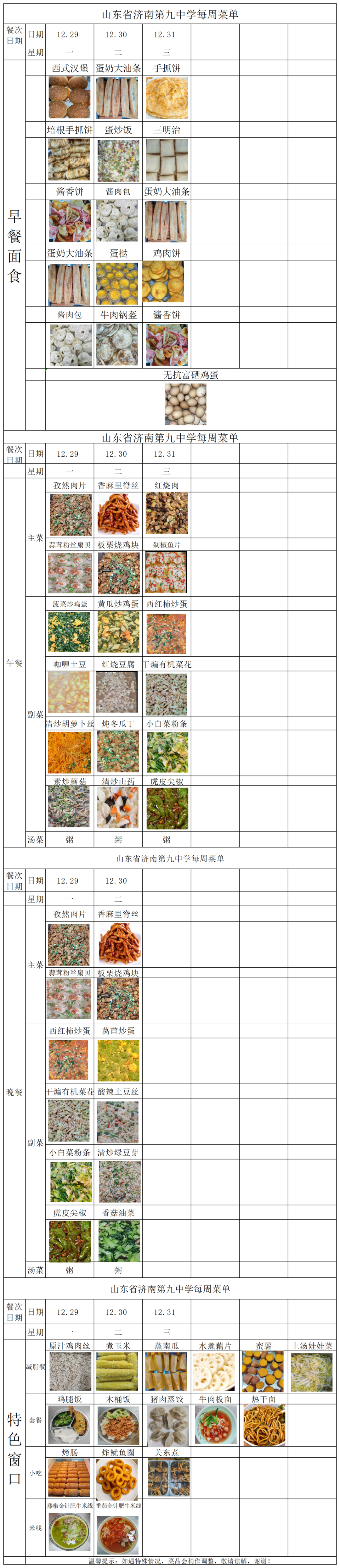 济南九中2025-2026学年第一学期第18周菜单