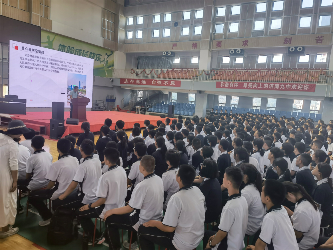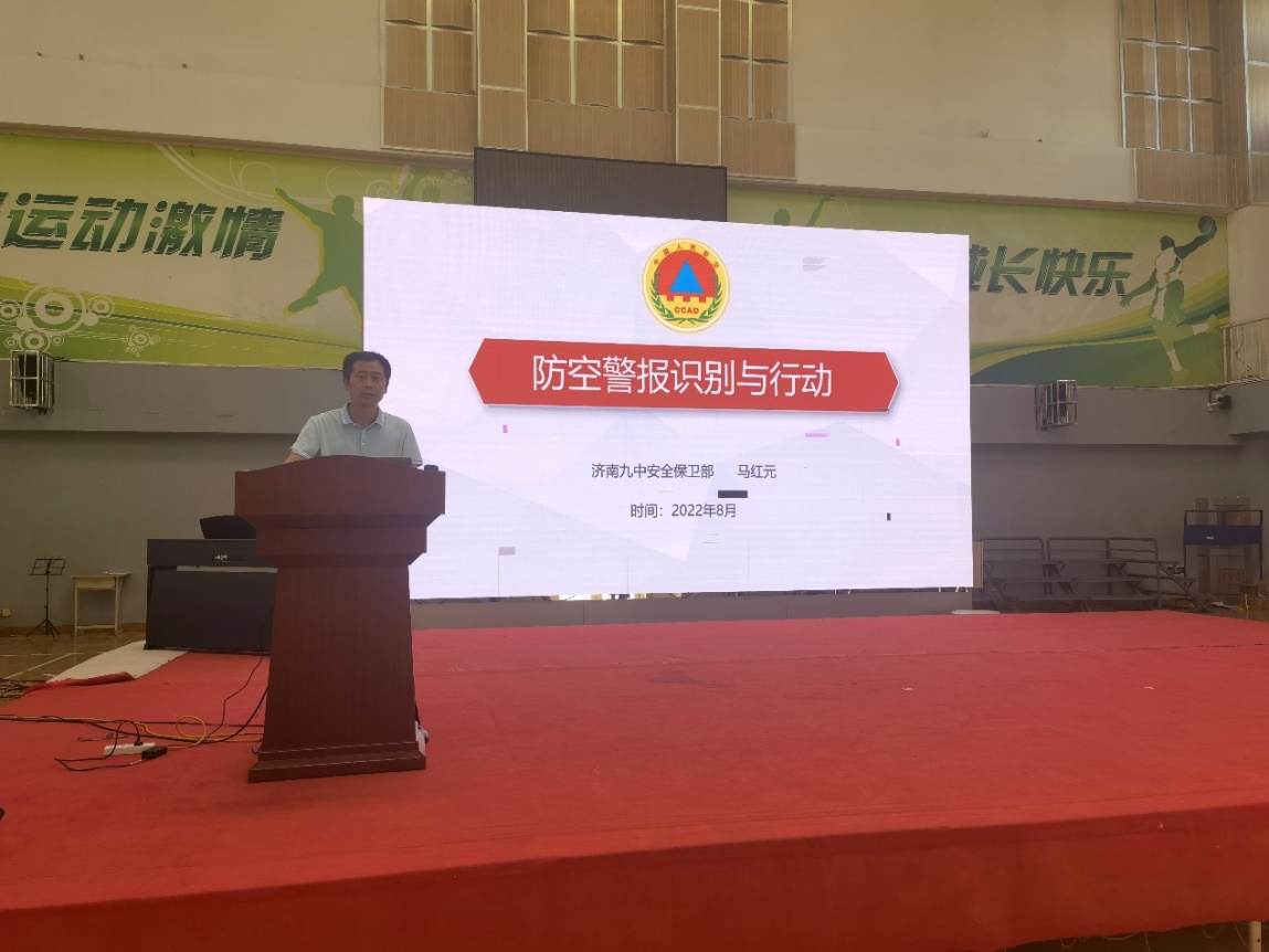为贯彻落实《山东省人民防空办公室、山东省教育厅关于进一步加强学校防空防灾知识教育工作的意见》,近日,山东省济南第九中学结合新生军训,在高一年级开展了人民防空教育活动。安全保卫部马红元副主任为学生做了一堂生动的报告。