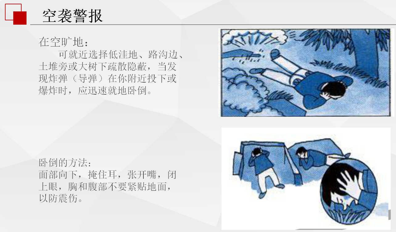 报告中,马主任为同学们讲解了发生预先警报、空袭警报和解除警报时,应当采取的措施与做法,教育学生做到正确避险、保护自己并参与救助他人。