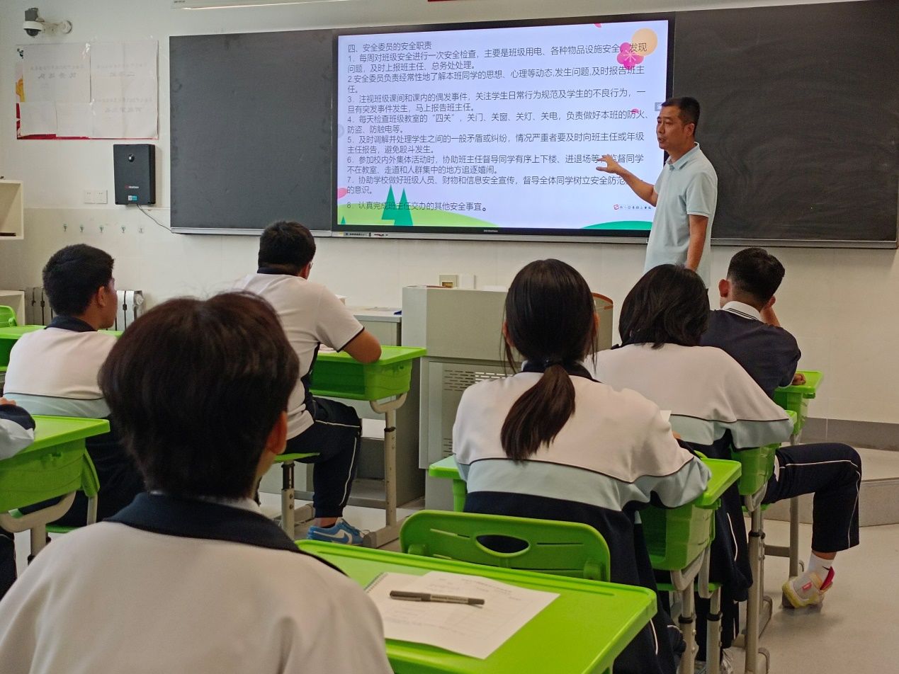 学校安全保卫部马红元副主任对全体安全员进行了培训。首先,他向安全员们详细解读了班级安全员的工作职责,帮助学生明确安全员的工作内容:协助学校、班主任做好安全隐患检查,发现问题及时报告,防患于未然。