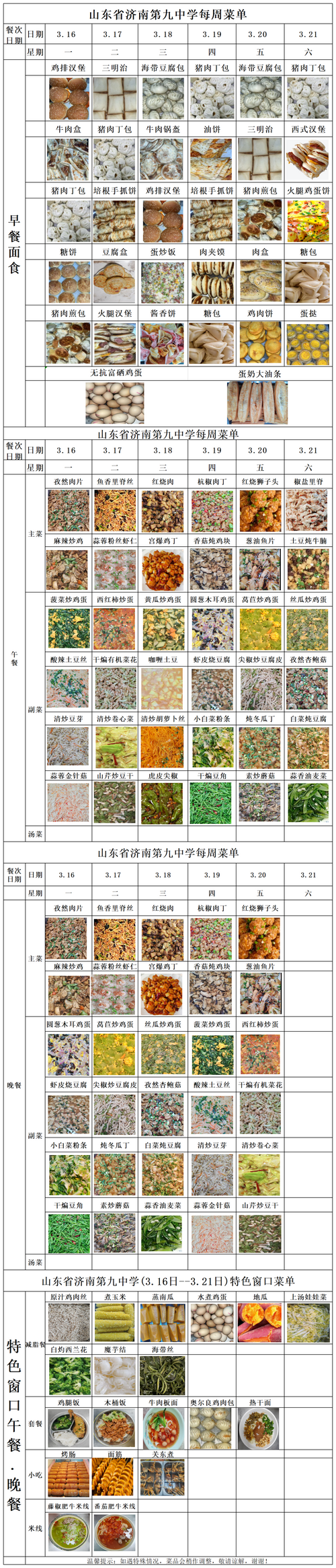 济南九中2025-2026学年第二学期第3周菜单