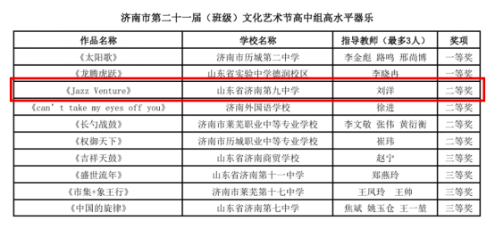 此前,学校管乐团、合唱团均已获评“济南市中小学高水平艺术团”,管乐团2022级宋申如同学摘得UK国际音乐比赛圆号项目绝对一等奖,并考入中国音乐学院,多名学子也成功升入省内外重点高校。
