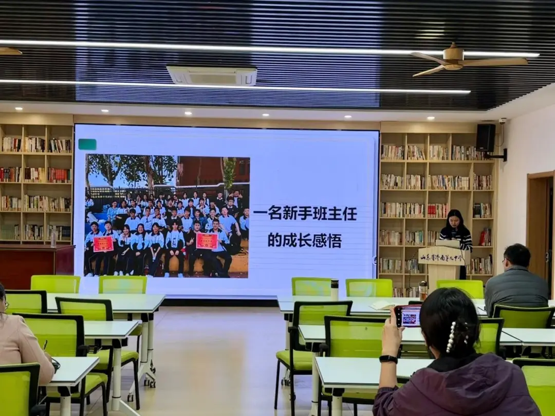 随后,董晓、储瑞、王彩玲三位老师分别从不同角度分享了班级管理智慧。董老师从真诚、规矩、看见与尊重、沟通四个维度阐述带班理念,强调以真诚为基石,以规矩和活动强化归属感,重视看见与尊重每位学生,并运用“三明治法则”深化家校沟通;储老师以“做有边界的班主任”为主题,主张发挥学生主体作用,通过干部自主竞选、量化管理和清晰奖惩机制实现规范化和科学化管理;王老师作为新手班主任,则分享了从挑战中成长的感悟,在处理突发事件和家校沟通中不断积累经验,逐步成长为有温度、有担当的班主任,并表达了持续学习的决心。