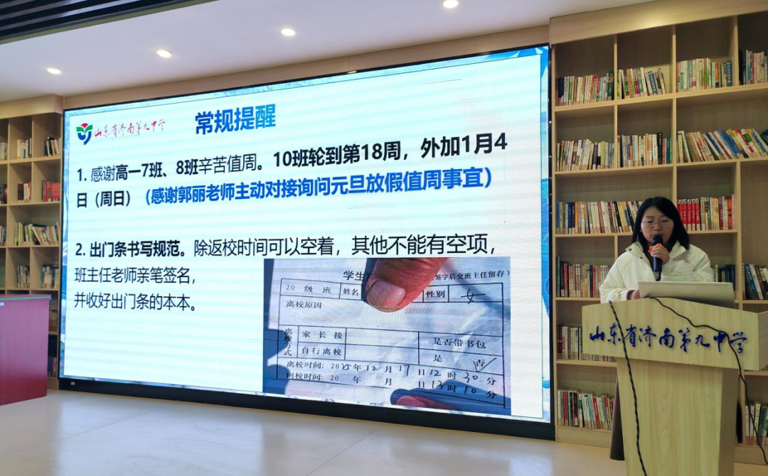 为科学规划近期工作,凝聚育人合力,济南九中学生发展部近日组织召开全体班主任工作会暨“班级管理老班说”第二期活动。学校党委副书记、校长杜海峰,纪委书记韩东,副校长杜新兵出席会议,学生发展部主任李瑞国主持会议。