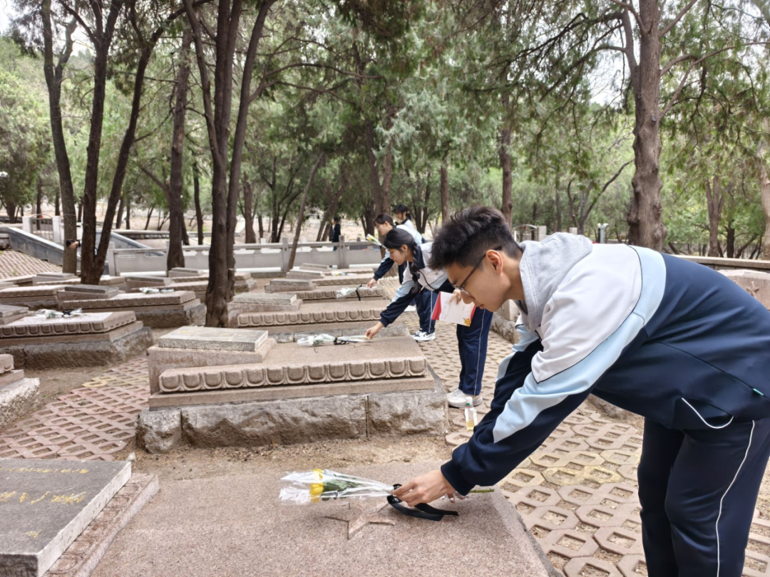 雄壮激昂的《中华人民共和国国歌》响彻陵园,全体师生神情肃穆,昂首肃立,齐声高唱国歌,铿锵的旋律承载着对祖国的赤诚热爱,更饱含着对革命先烈的深切缅怀。 共青团员代表队列整齐,高举右拳,面向团旗庄严宣誓。“坚决拥护中共共产党的领导,遵守团的章程……”铿锵有力的誓言回荡在陵园上空,展现了济南九中学子昂扬向上、立志报国的精神风貌,彰显出新时代青年学子坚定的理想信念与赓续红色血脉的决心。 宣誓完毕,全体师生怀着无比崇敬的心情,向英勇献身的革命先烈行三鞠躬礼,一鞠躬追思先烈,二鞠躬缅怀英魂,三鞠躬传承精神,每一次鞠躬都满含对先烈的无限敬仰与深切哀思。 最后,师生们手持鲜花,缓缓走向烈士陵墓,轻轻将鲜花敬献于墓前,俯身整理花束,静静伫立默哀。一朵朵鲜花寄托着哀思,一次次凝望饱含着敬意,同学们用最质朴的方式,缅怀那些为民族解放、国家富强抛头颅洒热血的英雄,铭记他们的无私奉献与不朽功勋。 此次活动,是一堂生动的红色教育实践课,不仅让师生们深刻感悟革命先烈的崇高精神,更厚植了家国情怀。同学们纷纷表示,将铭记历史、珍惜当下,以先烈为榜样,坚定理想信念,勤学笃行、砥砺奋进,把英烈精神融入日常学习生活,以实际行动践行青春誓言,争做担当民族复兴大任的新时代青年,让红色薪火代代相传。