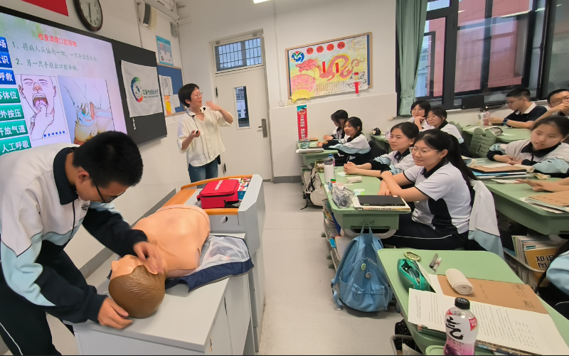 课后,学生们的反应热烈,他们表示:通过这次学习,不仅对急救有了深入了解,也更加明白了作为地球公民的责任。他们将教会亲友急救知识,让家人更好地适应气候变化危机,并将和家人一起参与到低碳生活中。 随着气候变化带来的不确定性增加,掌握急救技能已经成为每个人的必备能力。九中是第二批全国急救学校,有较好的急救资源。学校将继续大力推广“气候变化,急救行动”主题课。除了为本校学生提升素养,也为济南市其他学校义务送课。 济南市是山东省唯一的国家低碳城市、气候适应性城市“双试点城市。随着世界地球日的主题“珍爱地球,人与自然和谐共生”日渐深入人心,气候变化急救课程成为了济南教育领域响应环保号召的具体行动之一。近期,邵老师还在两所小学开设了“气候变化,急救行动”课程,受众160人左右。该课程将不仅提升济南学生的自救互救能力,也为培养未来的环保榜样奠定了基础。