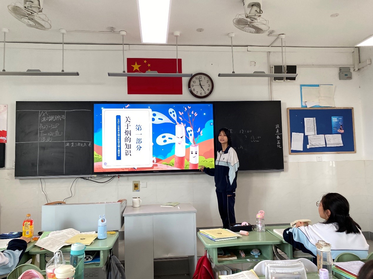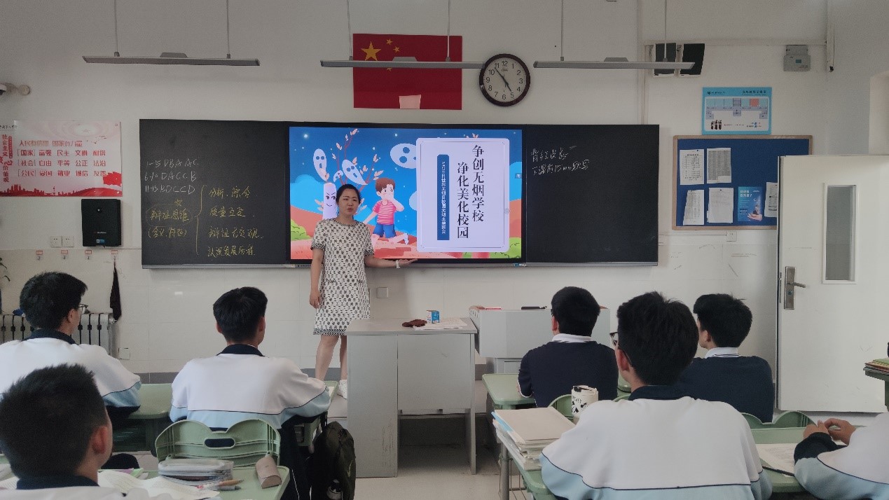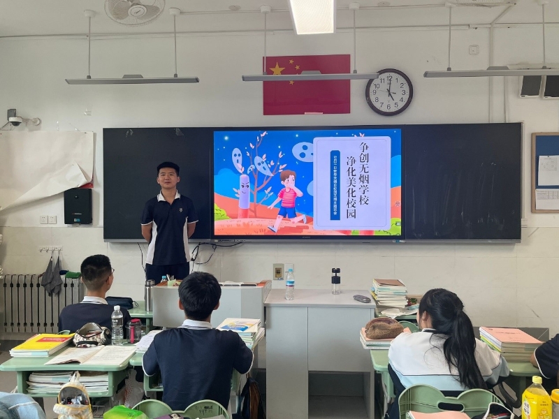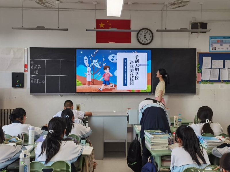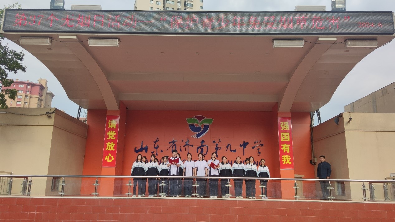 5月31日是世界无烟日,2024年世界无烟日的主题是“保护青少年免受烟草业干扰”。济南九中采用多种方式宣传无烟日主题,旨在教育全体学生,拒绝吸烟,营造健康向上的学习和生活环境。 活动一:升旗仪式宣传 升旗仪式是全校师生的集会,济南九中学生发展部在升旗仪式上向全体同学发出倡议,希望全体学生拒绝烟草,为净化我们的环境做出我们应有的一份努力。济南九中本着育人为先的原则,多维度、多角度的对学生进行全面的教育,抓住一切契机教育人、成就人!
