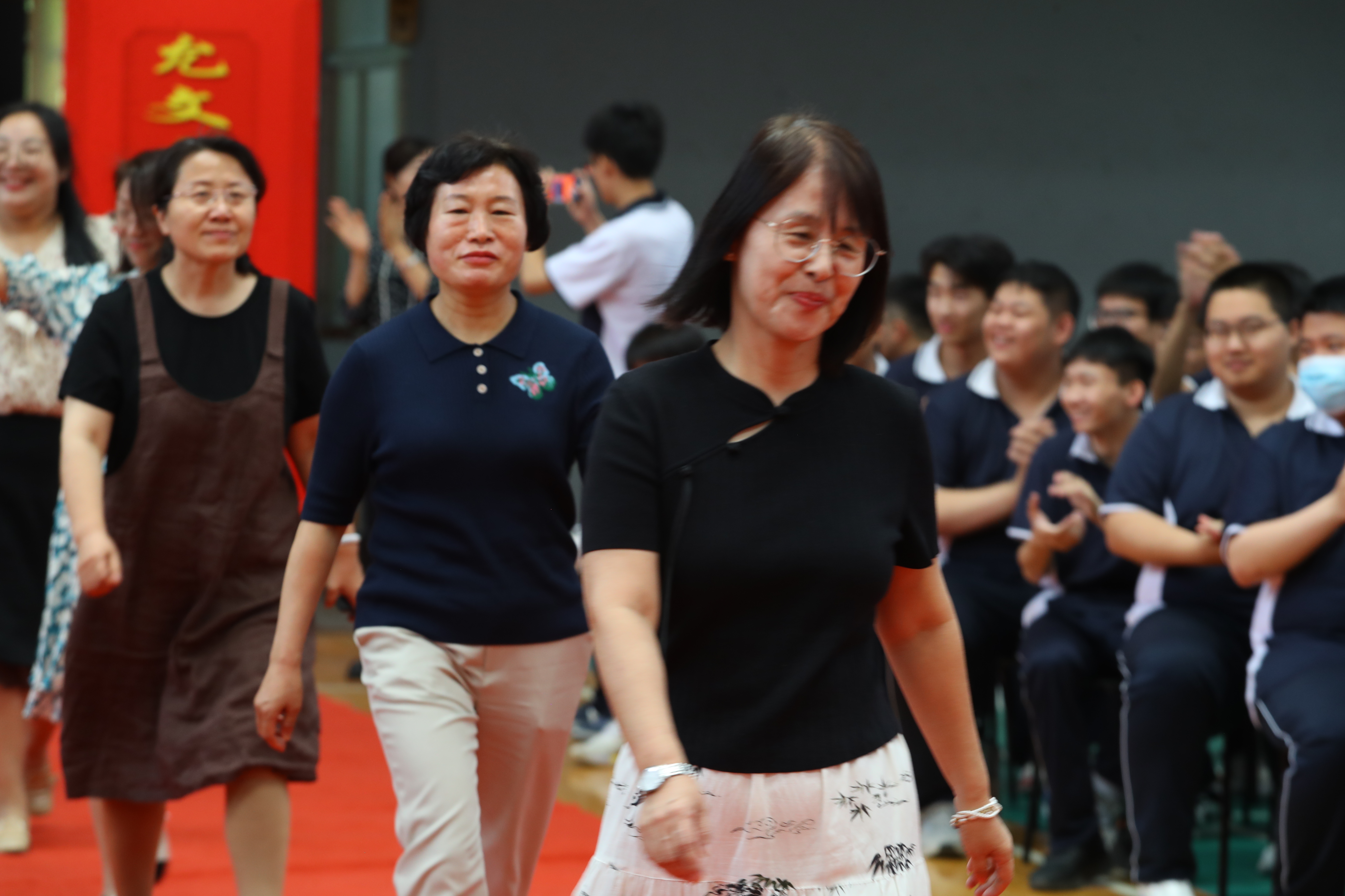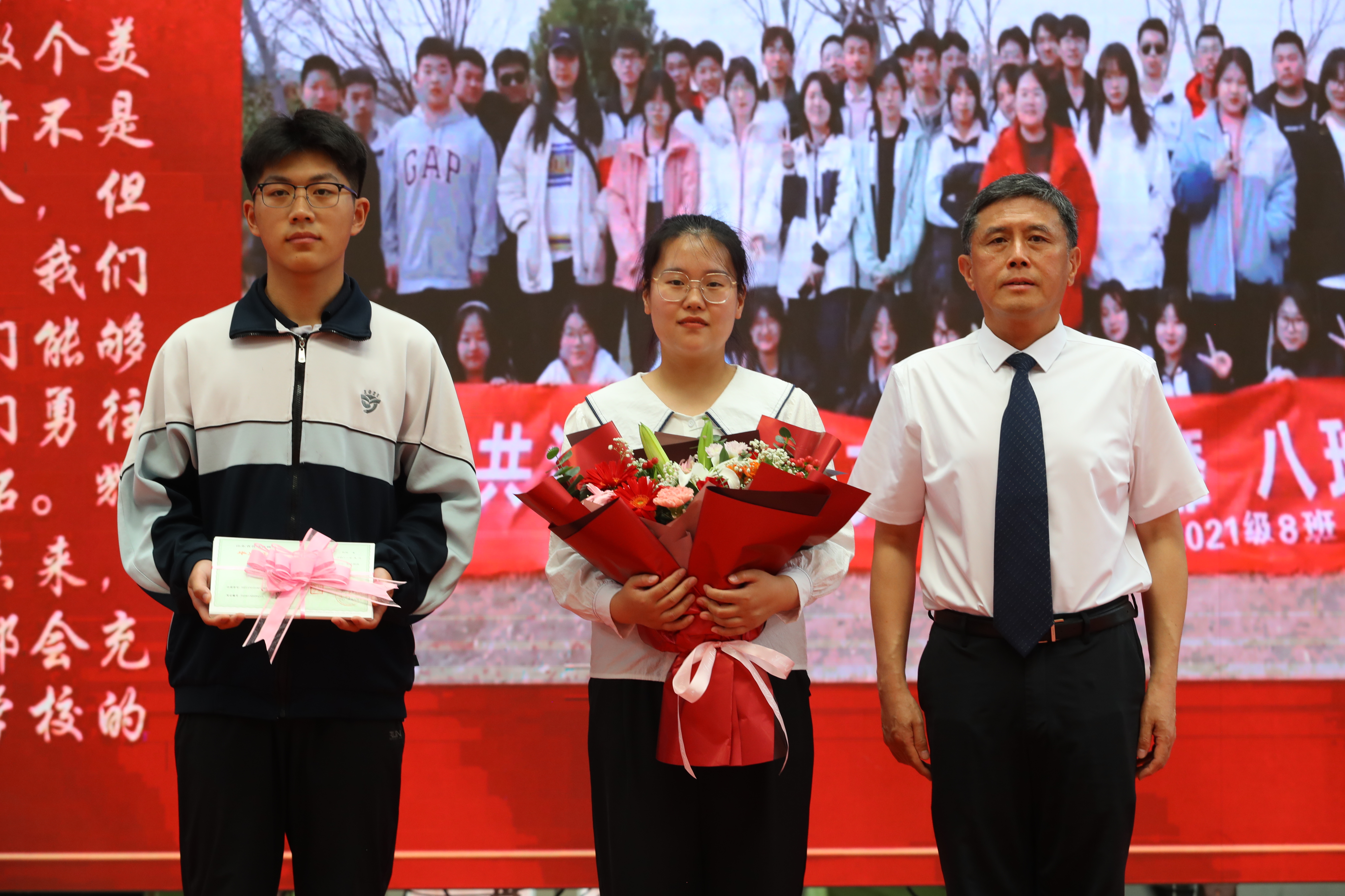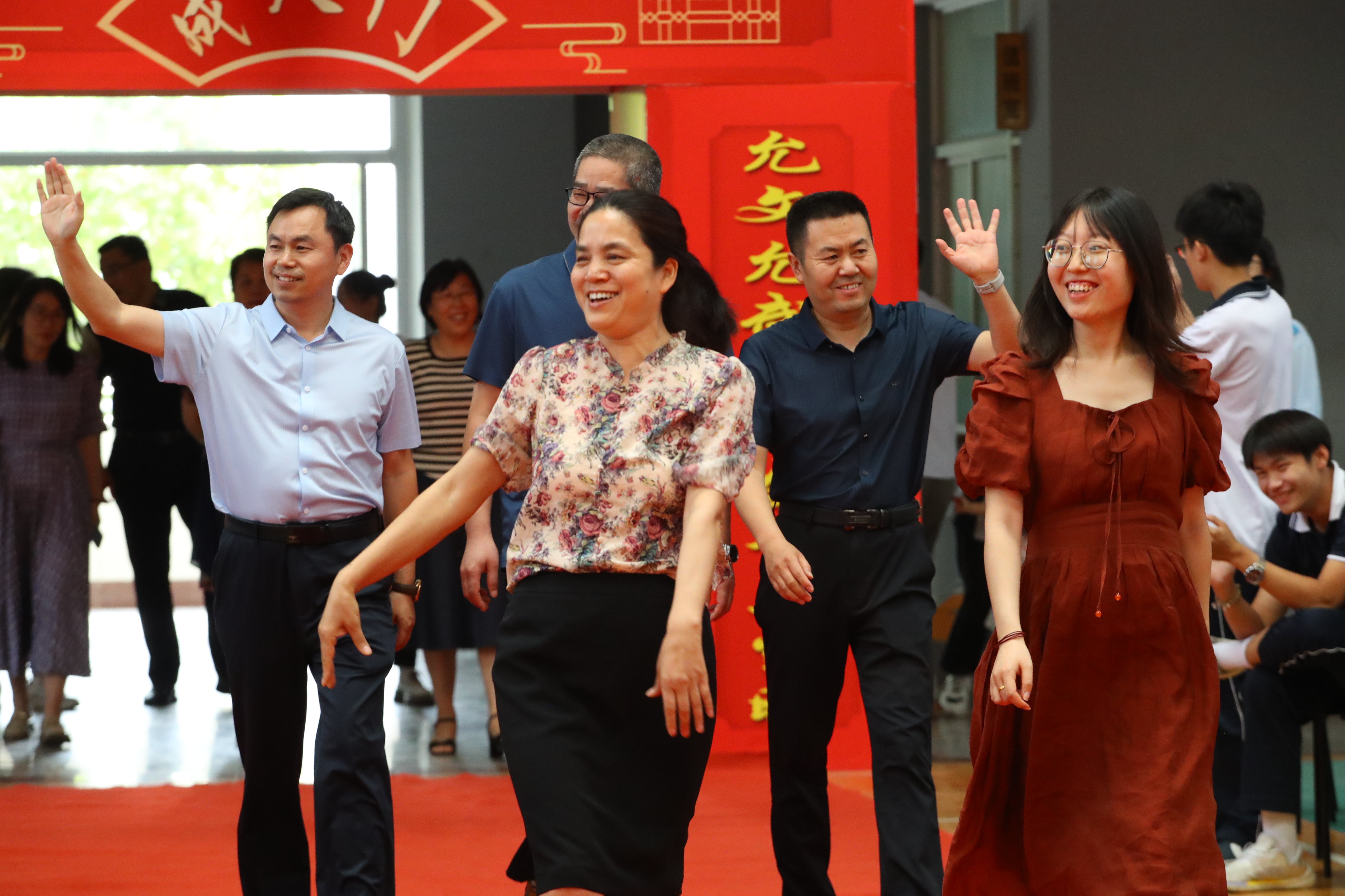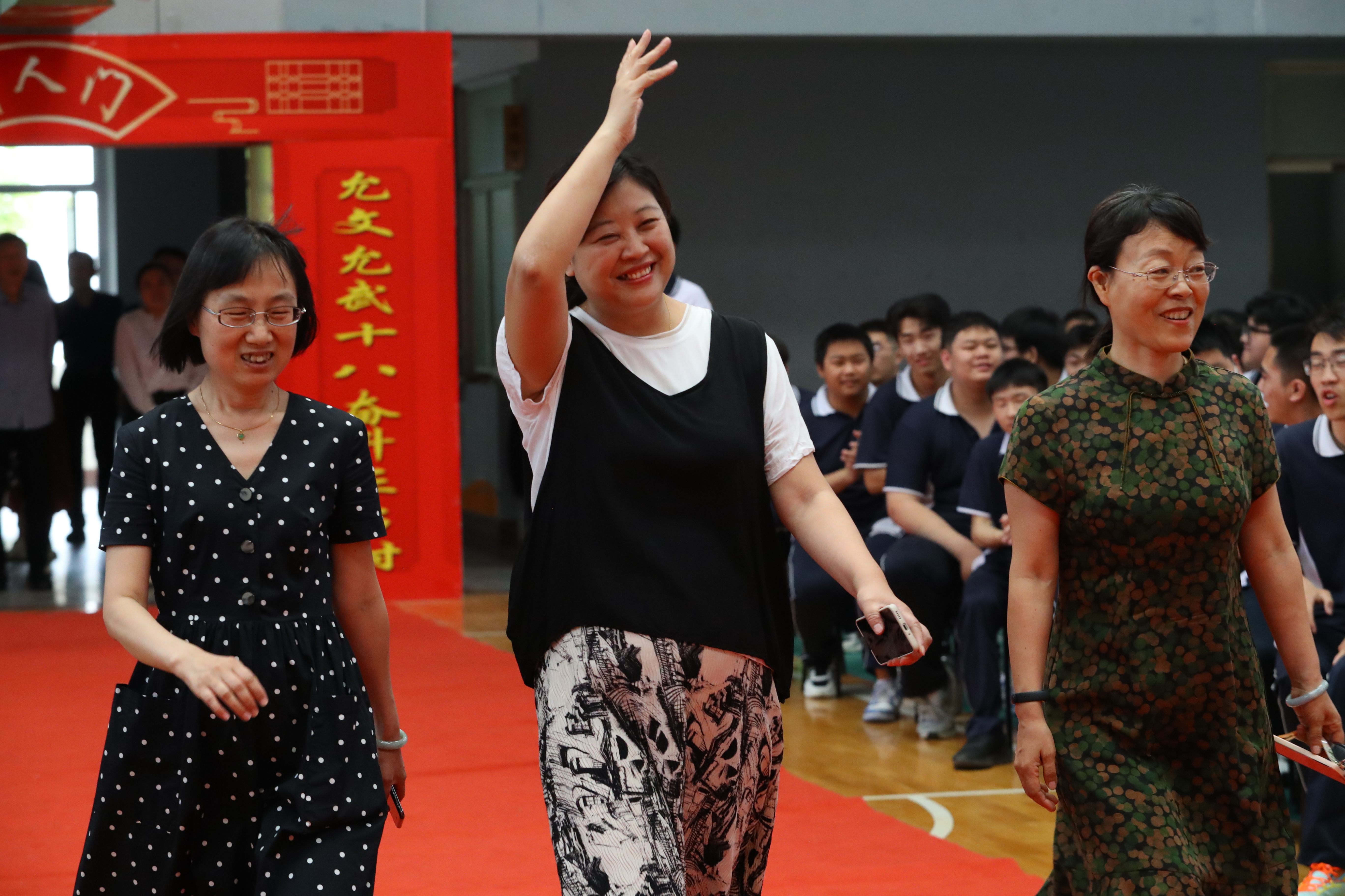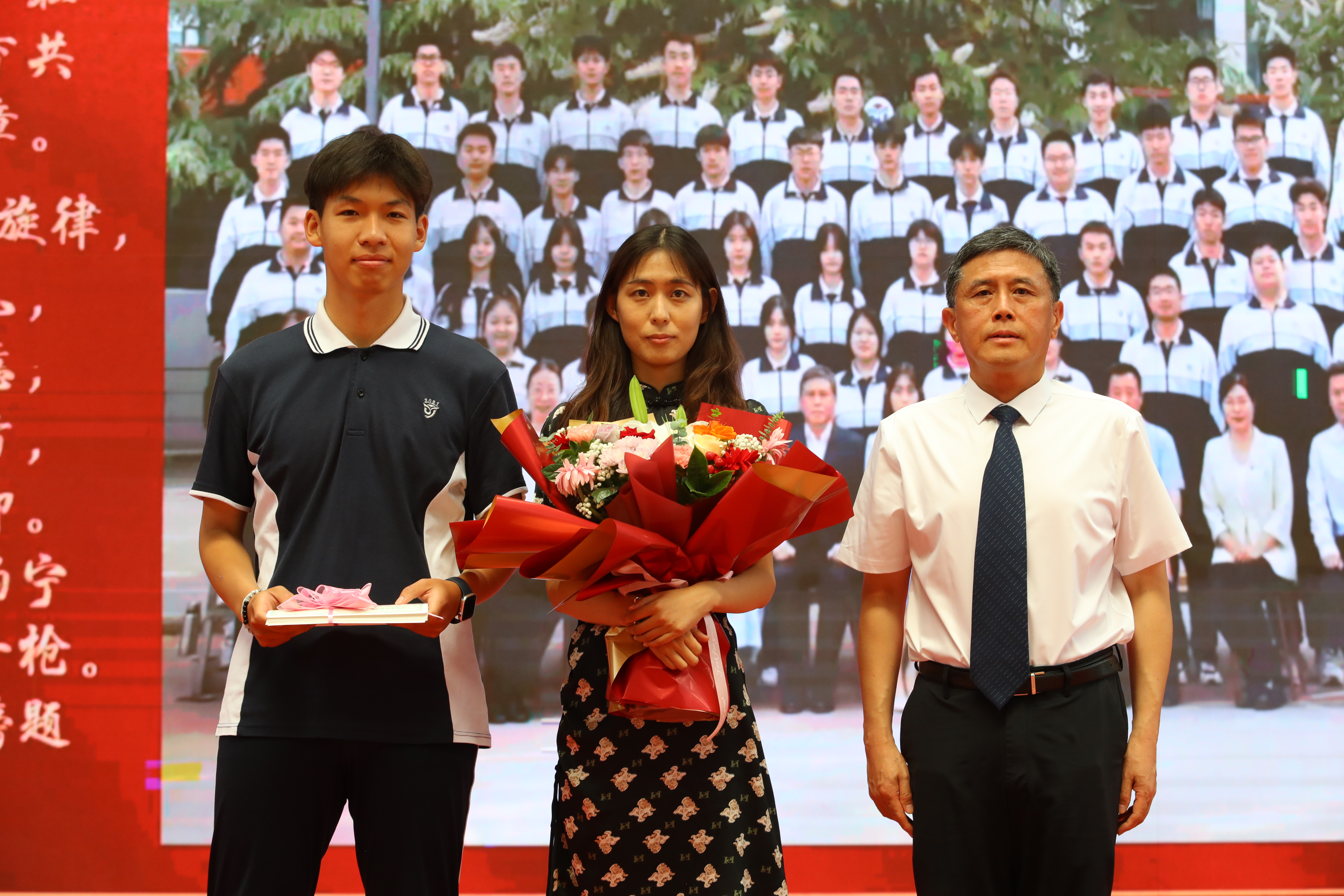 随后,年级全体老师依次入场,同学们用热烈的掌声和高涨的欢呼声表达最诚挚的欢迎和感谢,校领导向各位老师送上鲜花。