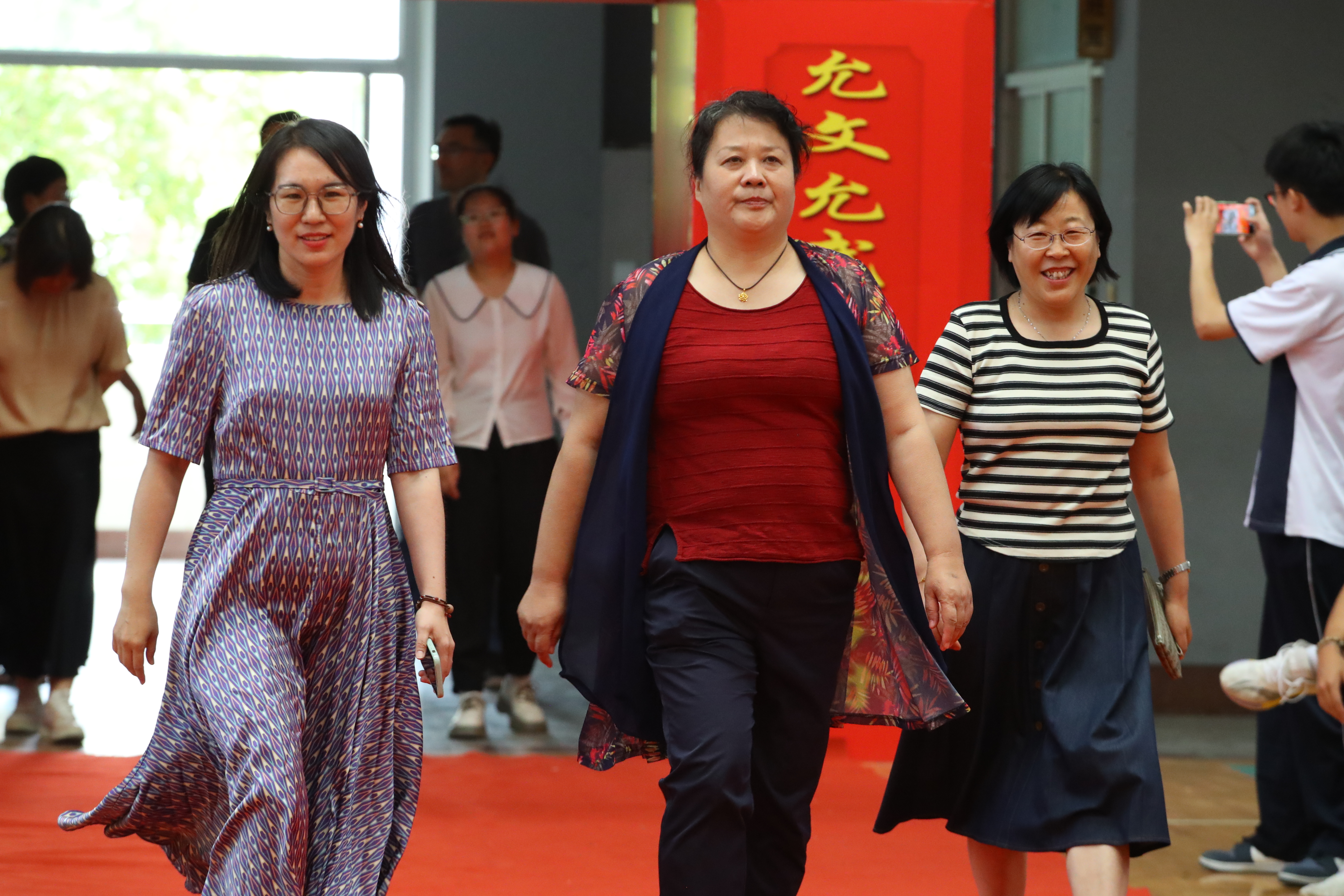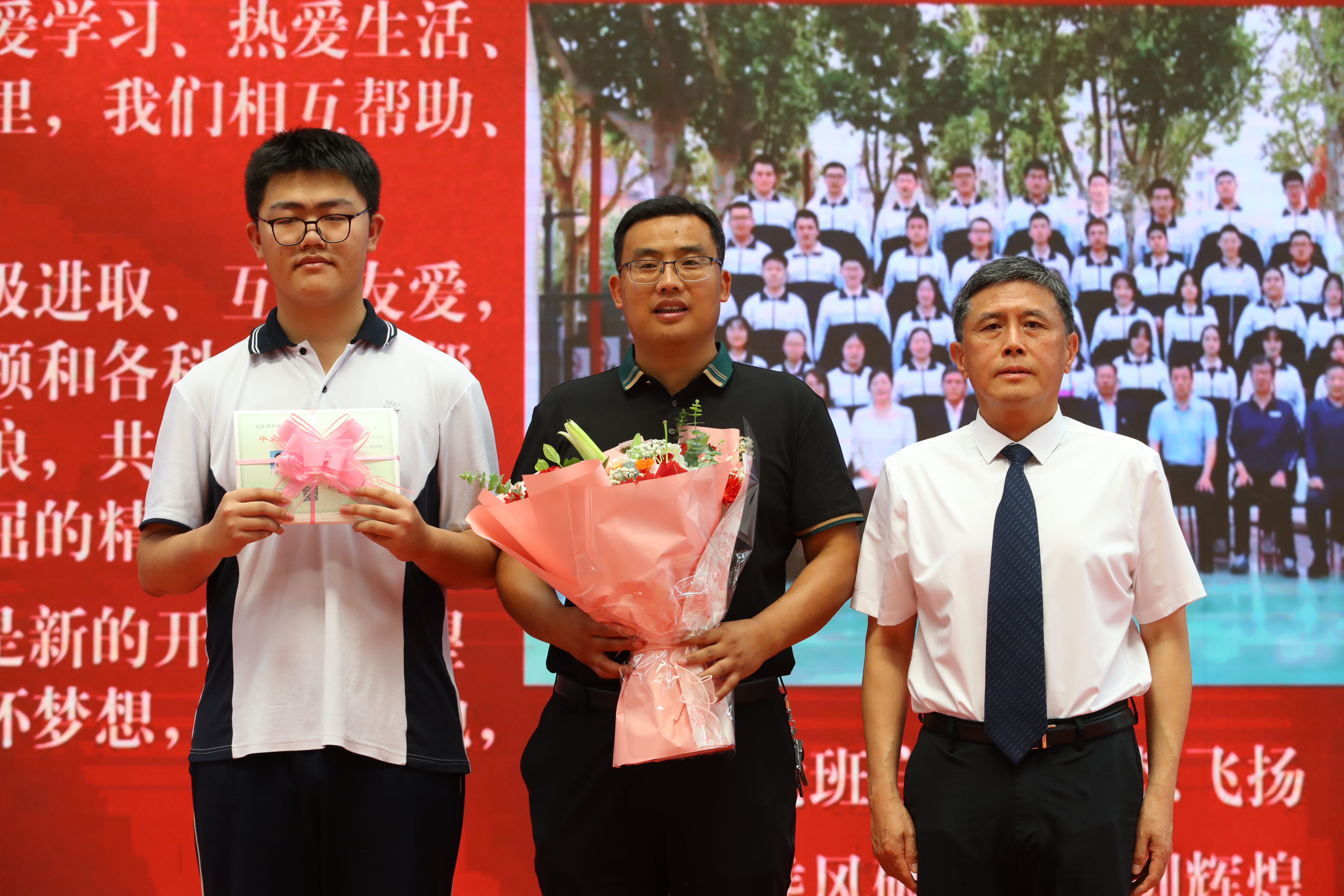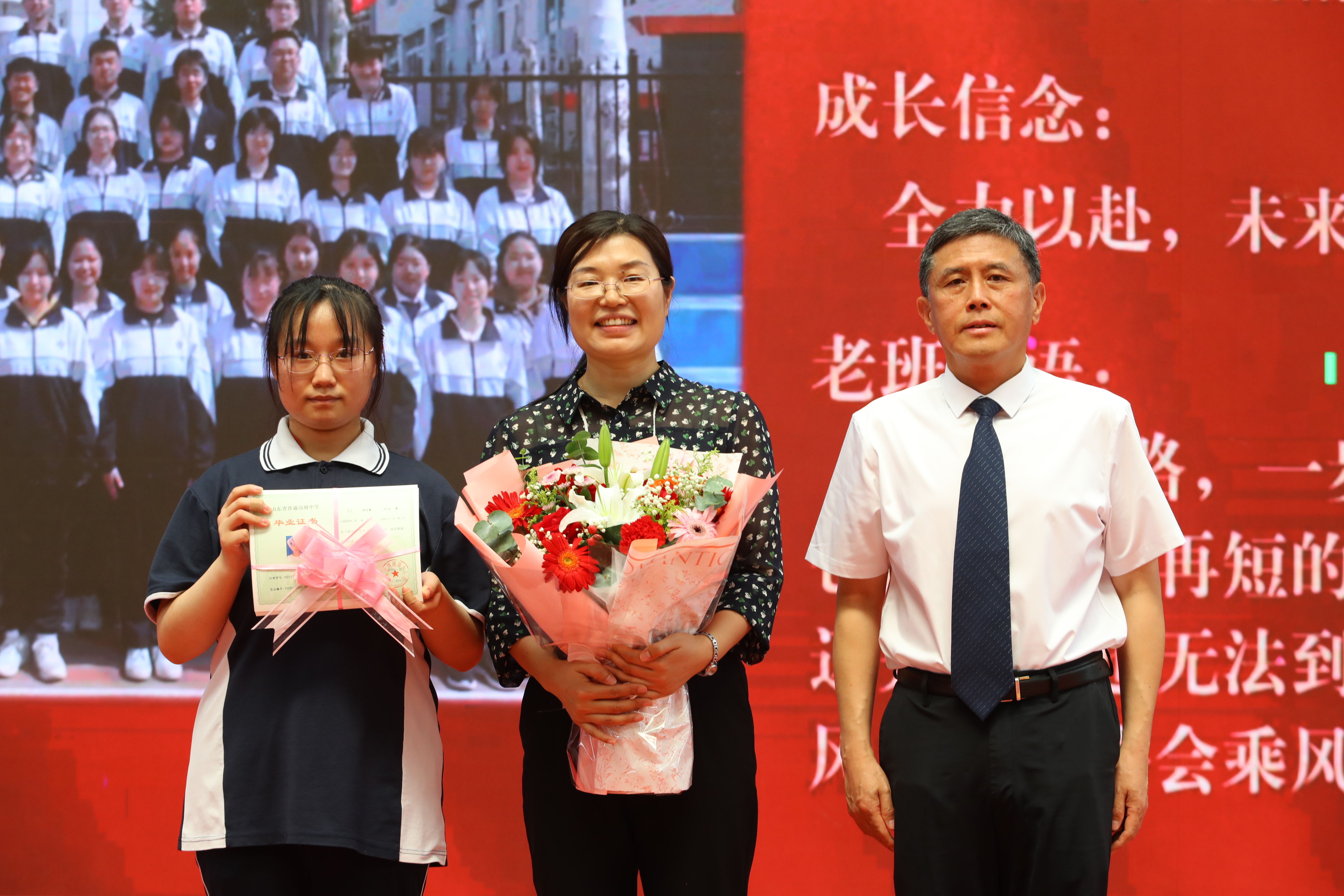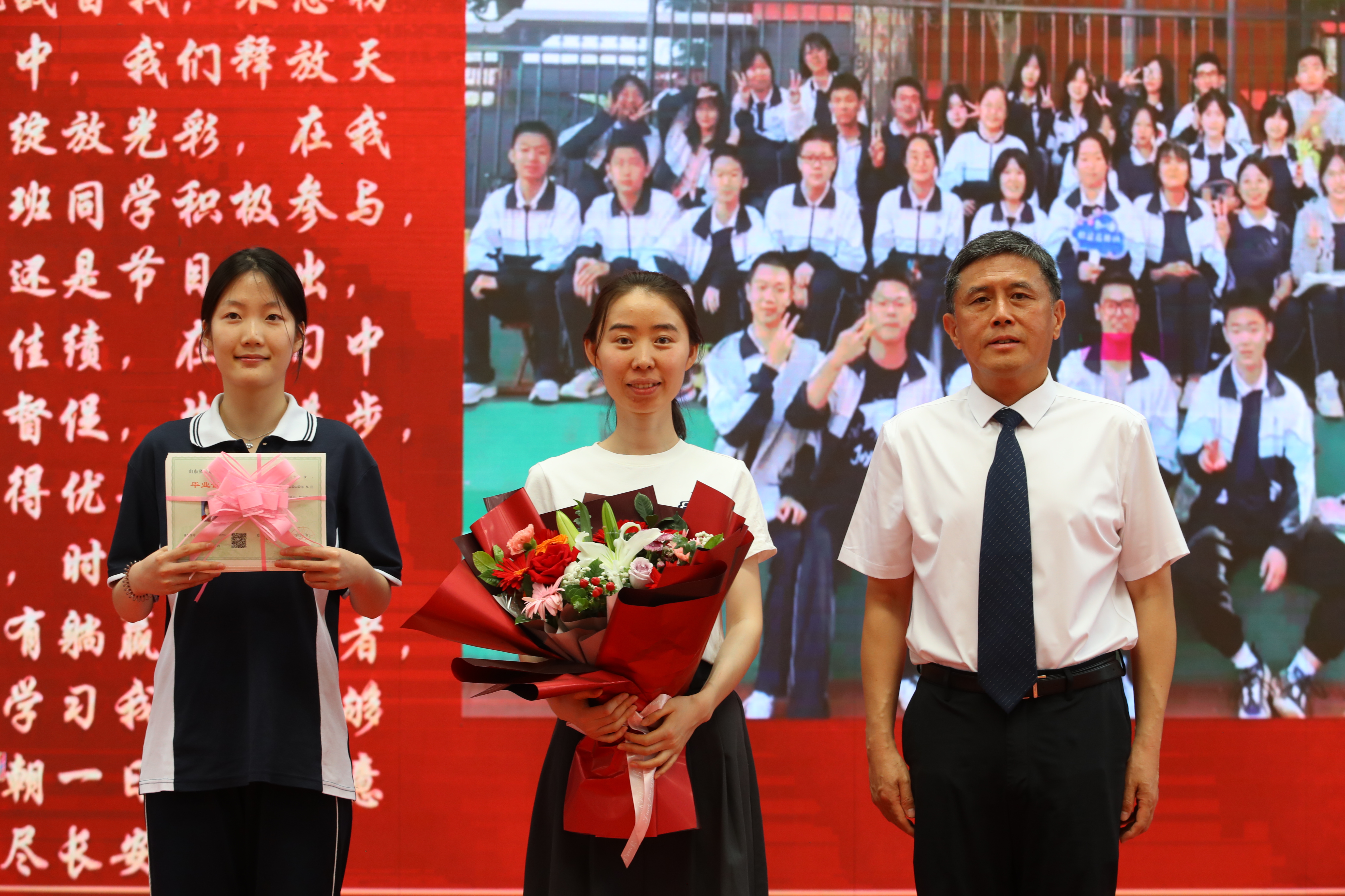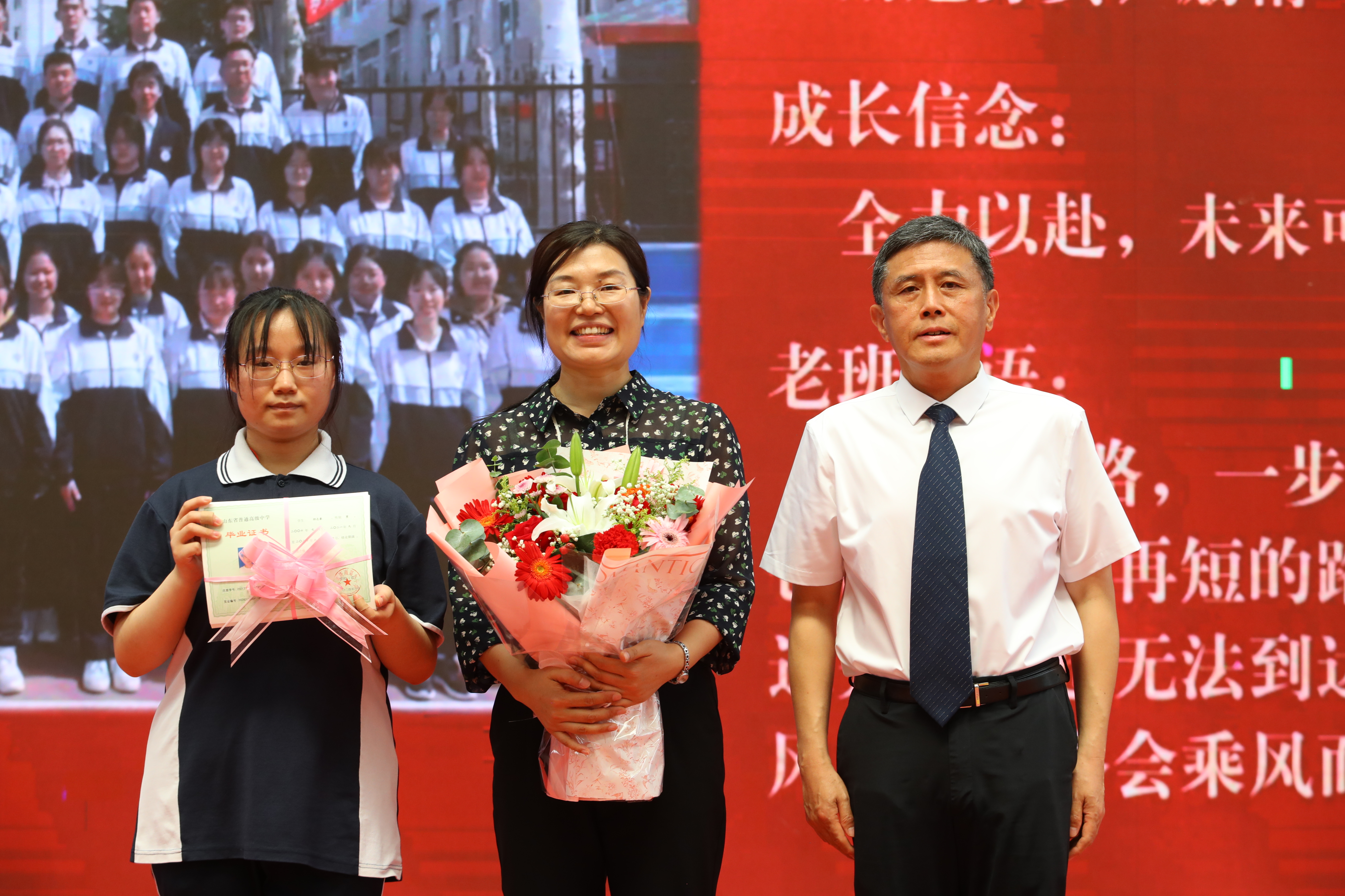 随后,年级全体老师依次入场,同学们用热烈的掌声和高涨的欢呼声表达最诚挚的欢迎和感谢,校领导向各位老师送上鲜花。