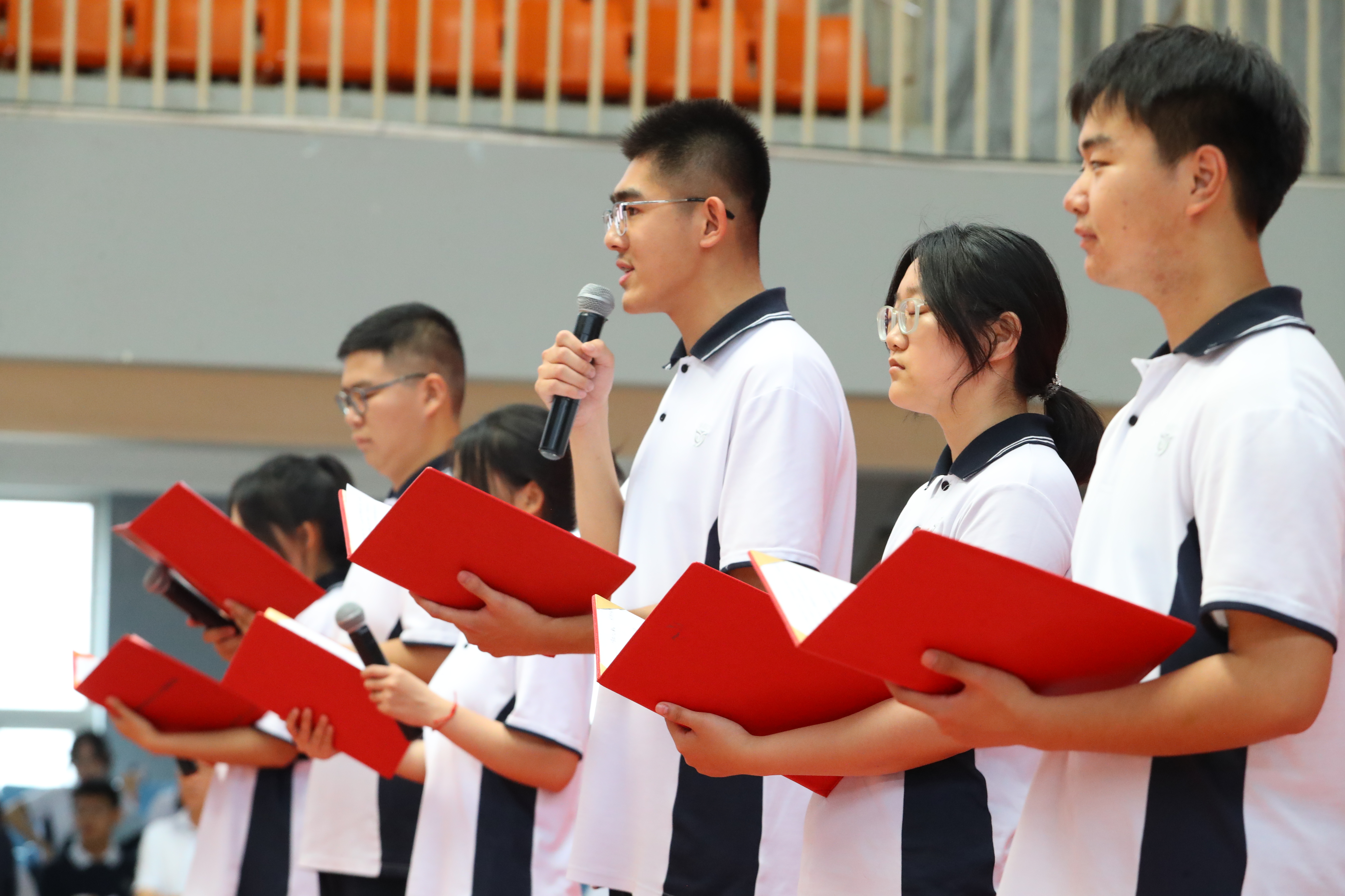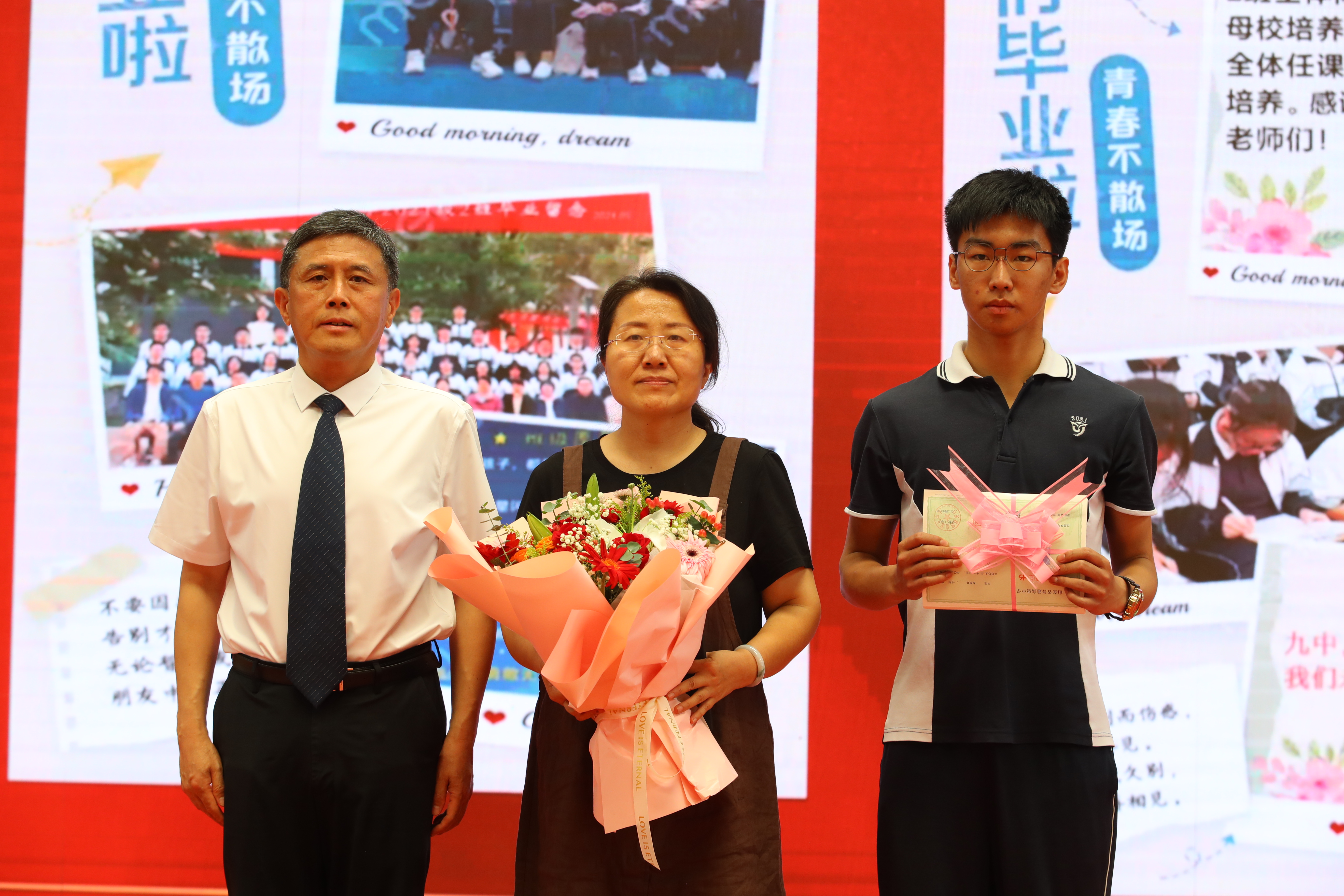 同学间的点滴瞬间、老师们的谆谆教诲、家长们的殷切期盼,都承载着太多动人故事。三年九中情,同学们内心充满了感动,学生代表贝宁、侯乐彤、邳志豪、乔梦佳、王熙堯和谷风潇六人的演讲交织成一首青春的赞歌,不仅是对过去三年的深情告别,更是对无限可能的未来的热烈迎接!