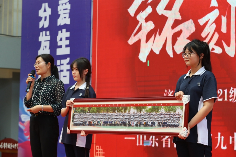 年级主任胡玉玲宣告2021级大合影正式收录至学校年鉴,这也代表着2021级全体学子的三年青春岁月将永远地铭刻在九中的历史之中!