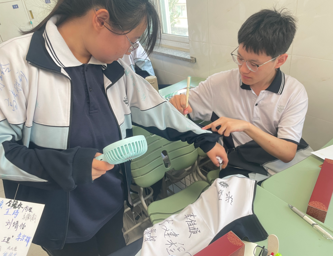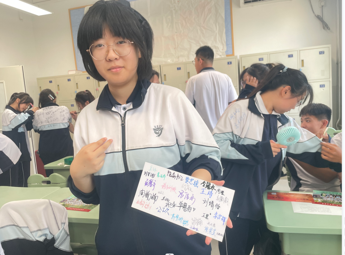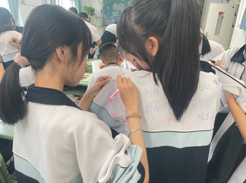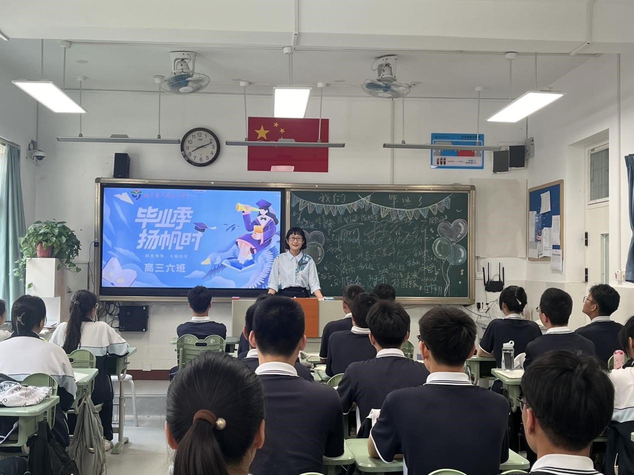 在高三6班的毕业班会上,班主任汪老师回顾了与学生共度的每一个美好瞬间,1012个日日夜夜承载了他们彼此的喜怒哀乐,也都深深印刻在每一位学生心中。随后,学生代表深情地分享了他们心中的感受,用最真挚的语言向老师们表达感谢,向同学们之间的相互鼓励表示感激。在难忘与不舍中,同学们纷纷在签名墙前合影留念,将美好的瞬间永远定格。