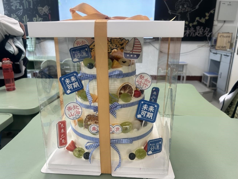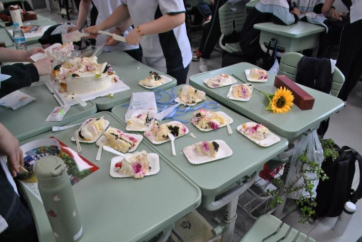 我们回忆了在向阳一班的点点滴滴,聆听了任课老师的祝福,接收了同伴的祝愿,享受了老班杨妈为我们定制的祝福蛋糕,每个字都包含杨妈的祝福,每一口蛋糕都深藏杨妈的爱意。请您放心,我们牢记您的教诲“认真听话、即可执行、立马见效、及时反馈”迈入大学门,踏上人生路。