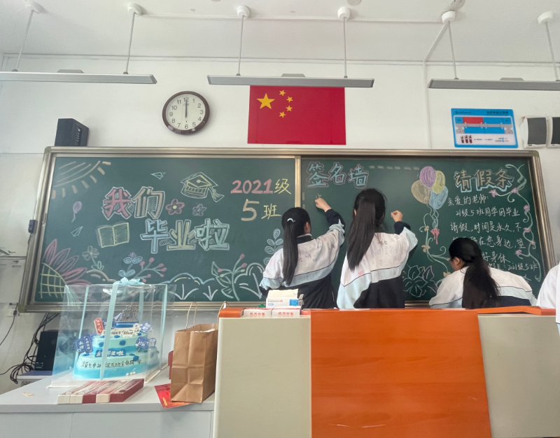 在6月4日的班级毕业典礼中,我们一起布置了教室,班主任给予了我们祝福,让我们写了高考后想做的事情,并依次为我们拍了照片。我们还一起唱了《起风了》,写了四年后的自己。班主任还给我们订了蛋糕,祝我们高考加油,金榜题名,未来可期。最后,希望我们12班这个集体可以越来越好,常回九中看看我们亲爱的老师们!