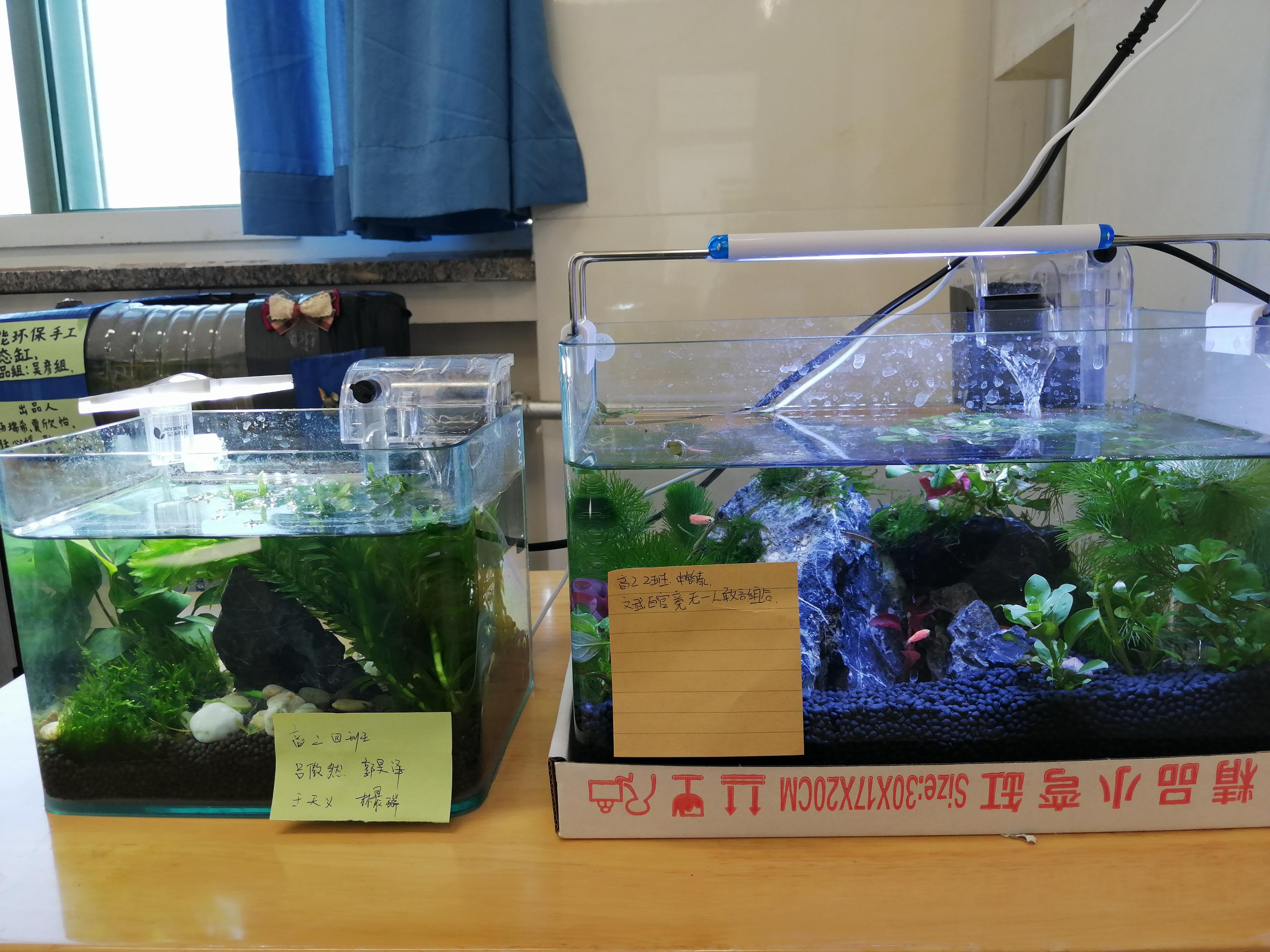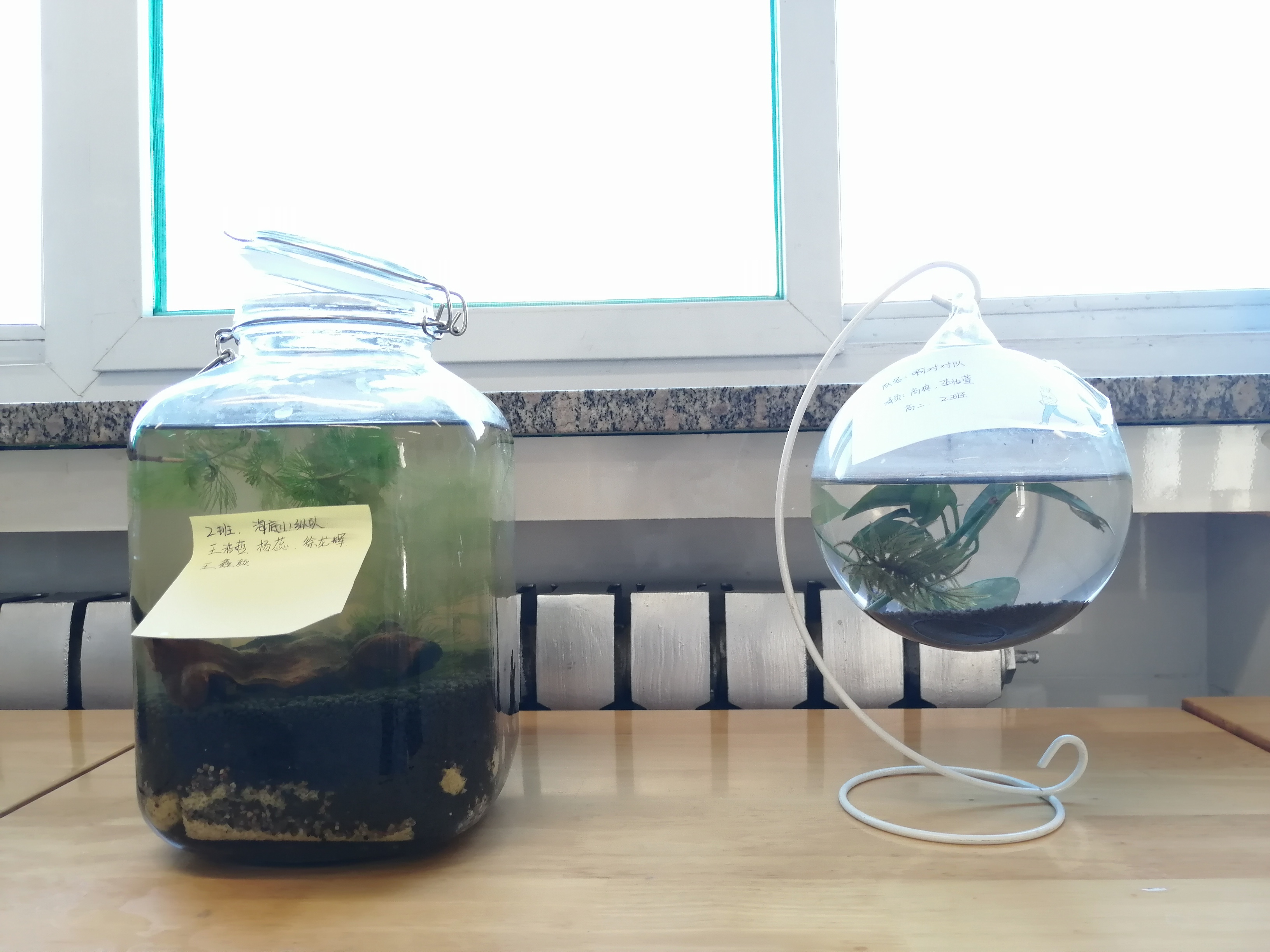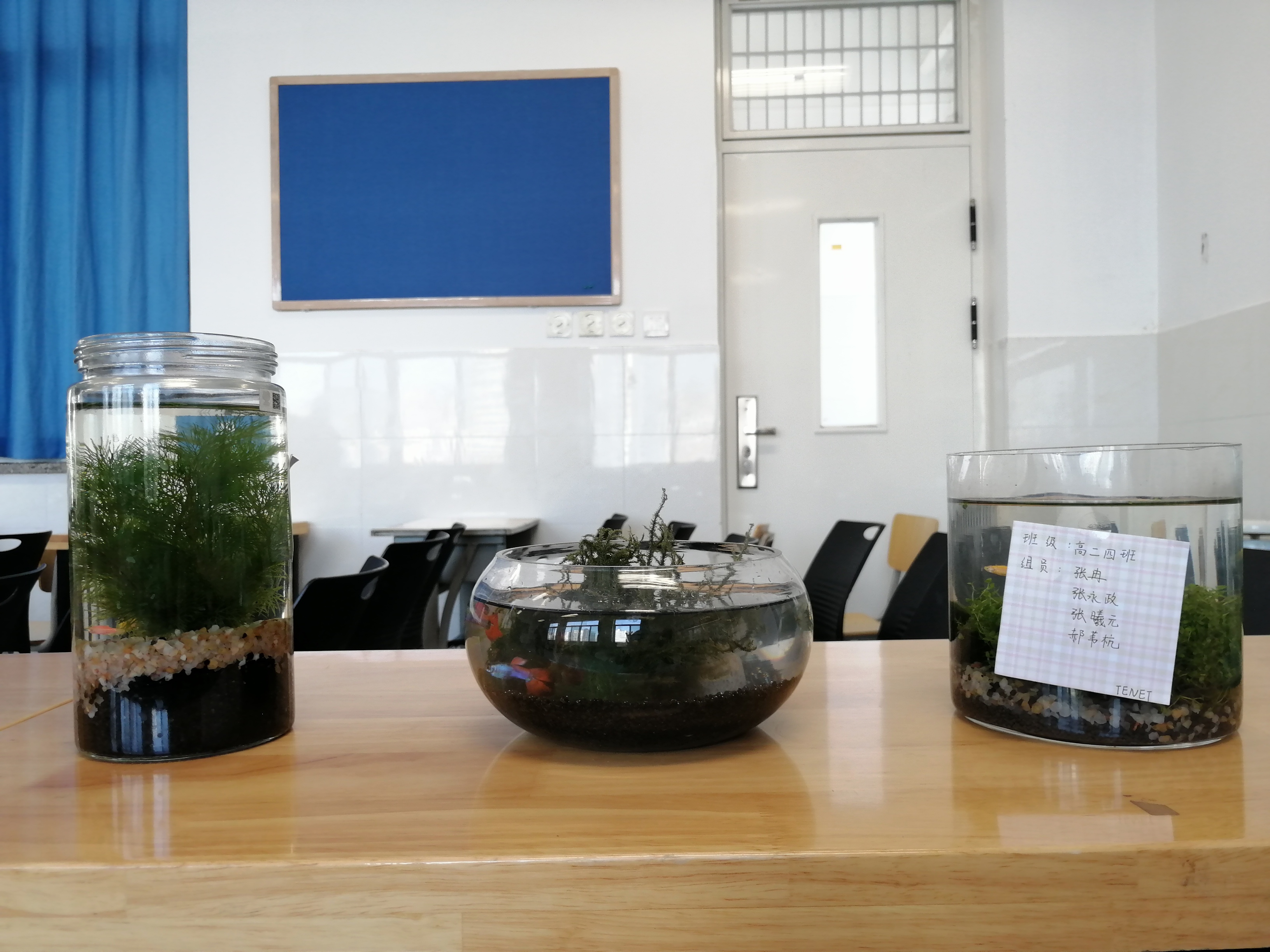 本次活动具体流程为查阅资料、团队合作制作生态缸、班内互评、年级展评。活动开始前,高二生物组教师明确了制作生态缸的目的、要求和原理,鼓励全体学生积极参与。各班学生组建小组,利用课余时间广泛搜集资料,了解制作生态缸的注意事项,积极交流探讨、大胆探索尝试,成功制作出生机勃勃、富有创意的生态缸,呈现了一幅幅栩栩如生的水中美景。