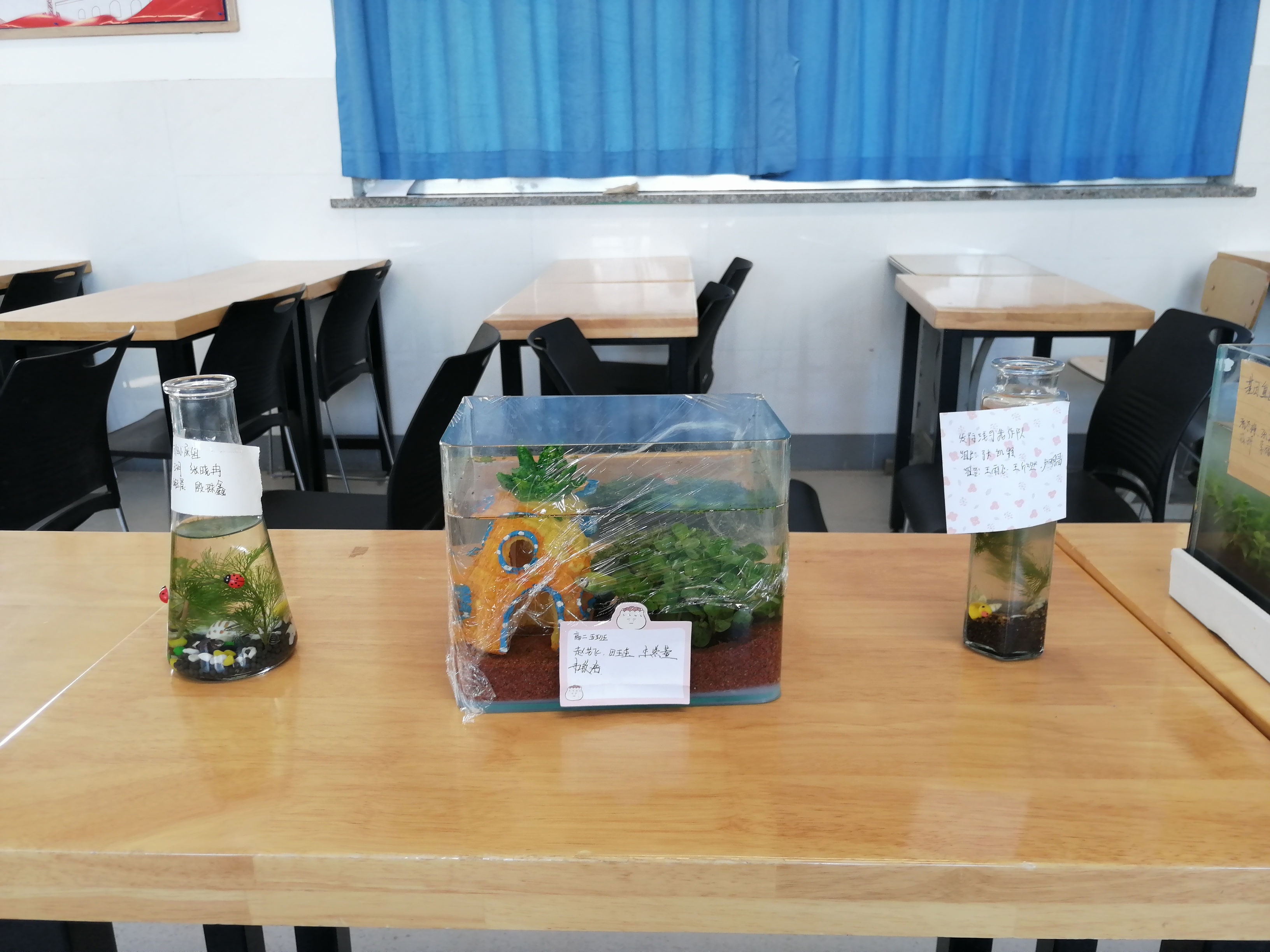 “生态就是资源”,为进一步加强学生生物科学意识,建立生态环保理念,济南九中高二生物组组织学生开展生态缸制作PK赛,12月29日学生作品进行了集中展览,济南九中王少勇副书记、杜宪铭副校长、李磊主任和生物组教师参加了展览活动。